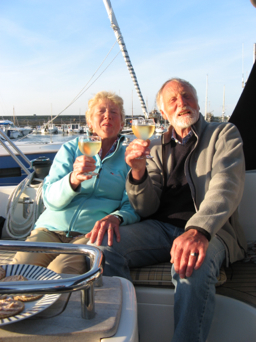 Our Fleet looked a splendid sight, especially as the sun came out right on cue. It was the first really warm and sunny evening when we had all been assembled, so a Pontoon Party with plenty of local wine seemed appropriate (and attracted a fair amount of attention from the locals who wondered what 'ze mad EEnglish' were doing this time). There were music groups of all genres and descriptions positioned all over this historic town - some extremely good like the jazz quartet comprised of 4 male pensioners we found in the old part of the town, and some extremely bad like the ugly-voiced-synthesised-backing twenty-something 'lad' who was unfortunately positioned very near to the marina and continued playing into the small hours. Cant think why he had a large audience of very young women ... or did I miss something? [No comment please!] The only dampener on this mainly very enjoyable and unexpected evening's entertainment was that when it finally closed down in the wee small hours, a couple of beer bottles were thrown at the boats berthed next to the pontoon, and they broke on the decks, scattering splinters of glass onto the neighbouring boats.